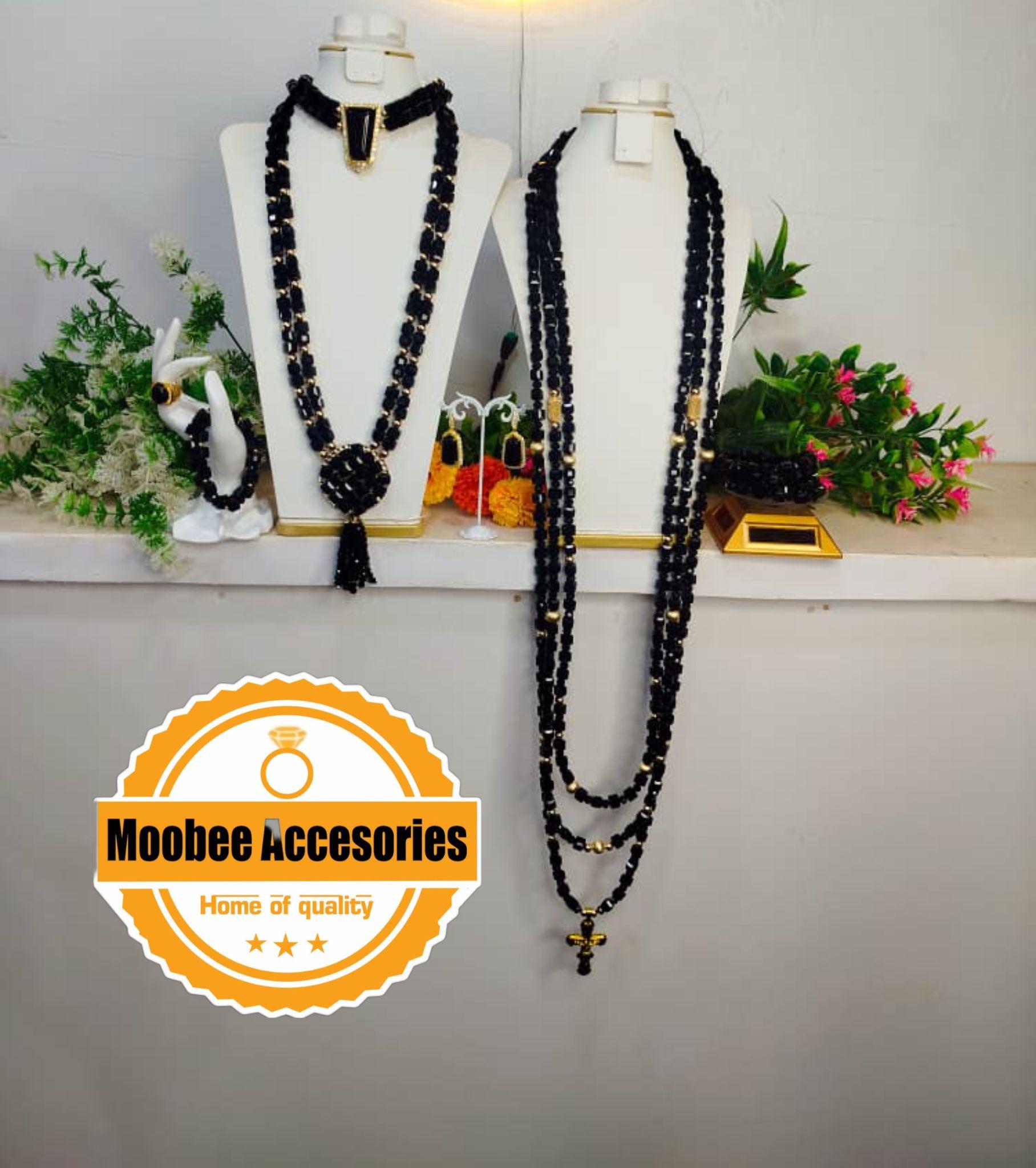 Command attention and exude elegance with this Royal Midnight Black Beaded Jewelry Set. Handcrafted with premium quality black crystal beads and accented with gold detailing, this exquisite set is designed to elevate your look for any grand occasion.