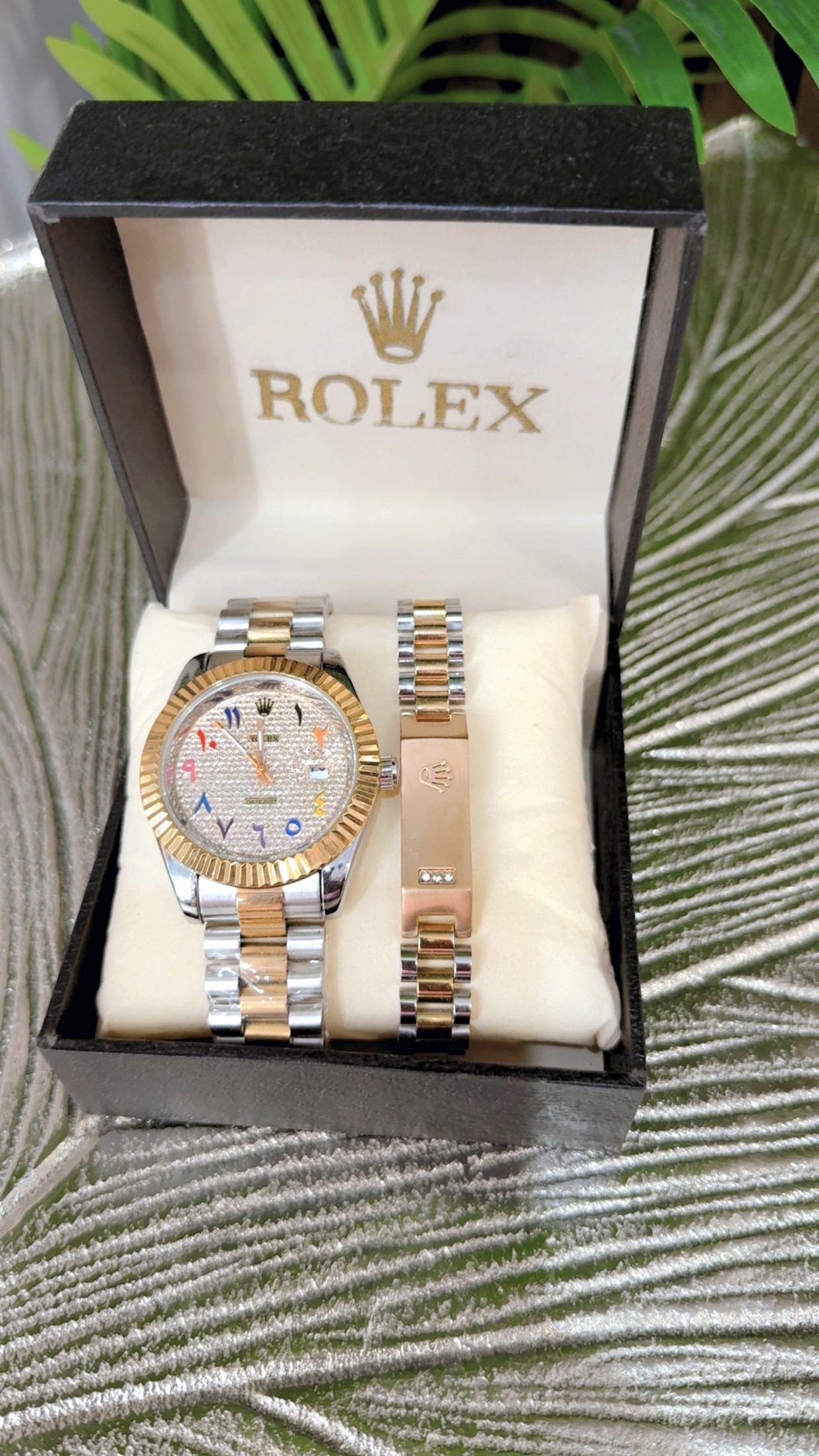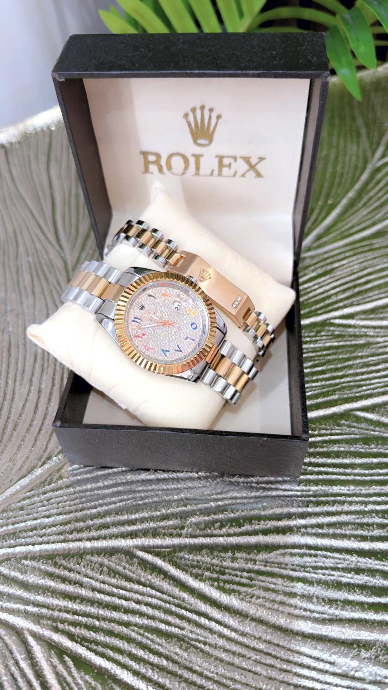 Elevate your style with this Men’s Rolex Watch in a stunning rose gold and silver finish. Crafted for men who appreciate luxury and precision, this timepiece combines elegance with durability. The dual-tone design makes it perfect for both formal occasions and everyday wear. Featuring a sleek dial, premium stainless steel strap, and reliable quartz movement — it’s more than a watch, it’s a statement of class.